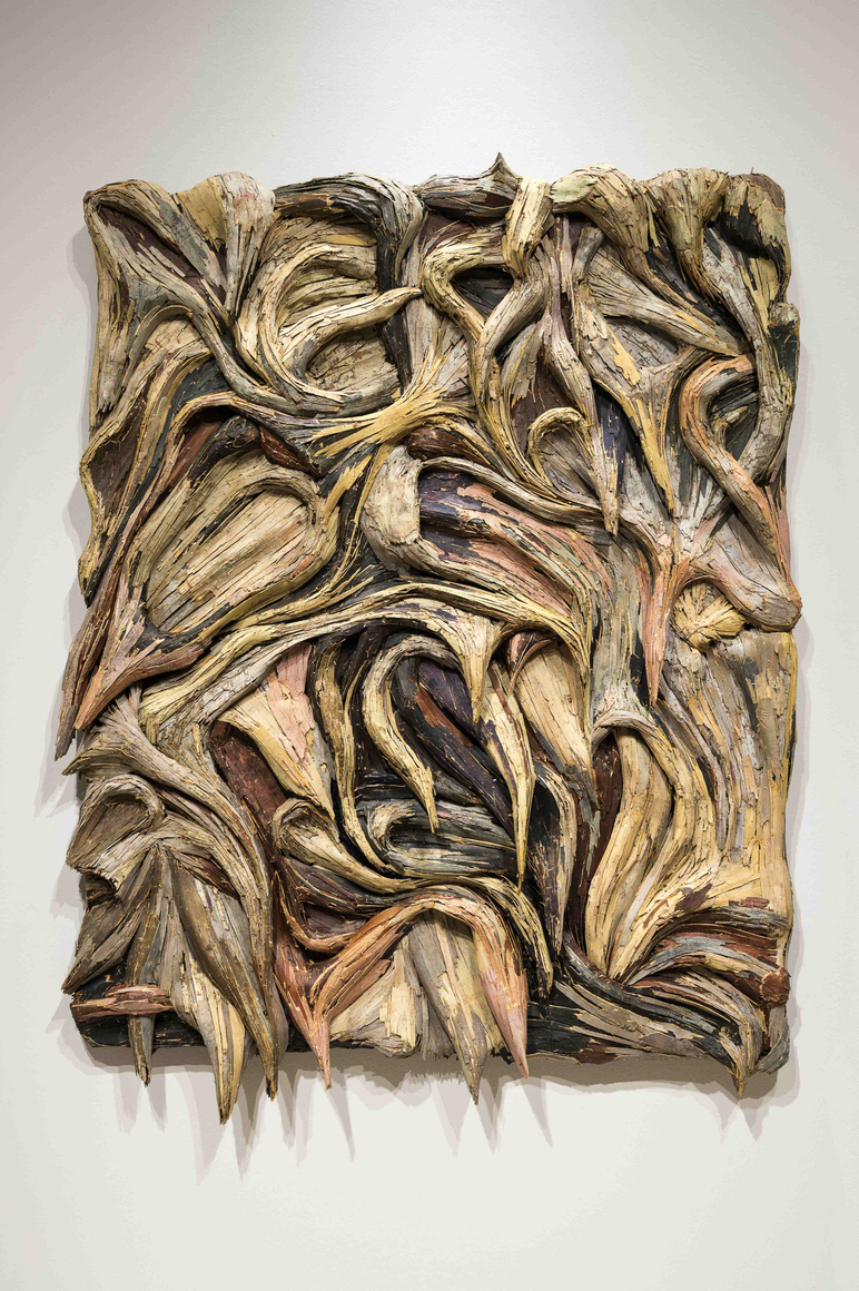plywood, tree bark, cardboard, glue, cement board